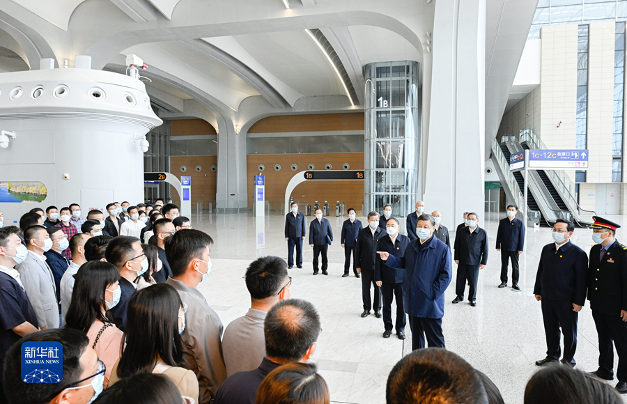5月10日,中共中央總書記、國家主席、中央軍委主席習近平在河北省雄安新區考察,并主持召開高標準高質量推進雄安新區建設座談會。這是10日上午,習近平在雄安站考察。新華社記者 李學仁 攝