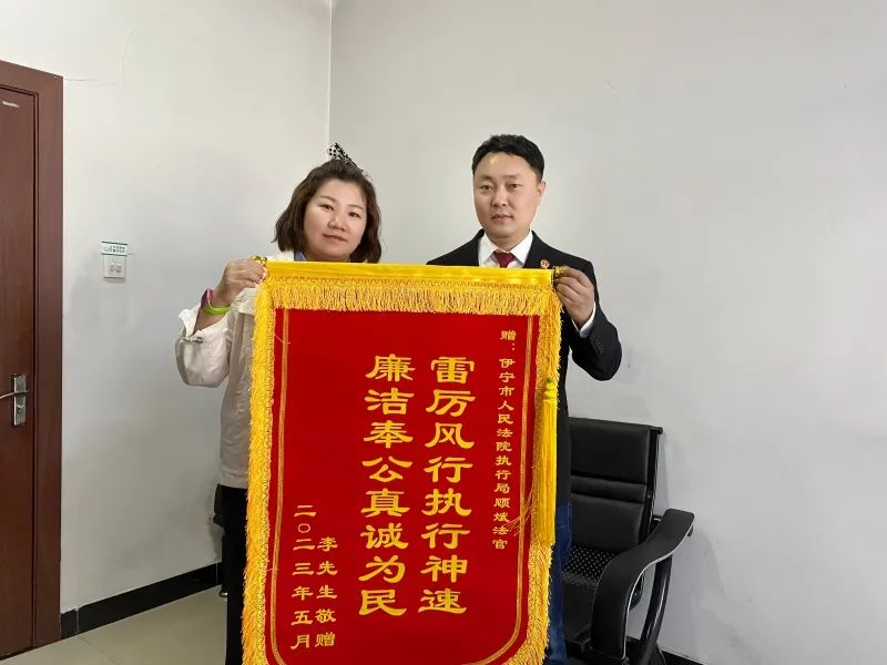 新疆平安網訊“顧法官,謝謝你幫我追回補償款。”5月11日,周女士對伊犁哈薩克自治州伊寧市人民法院高效辦案給予肯定并向法官顧斌贈送錦旗。