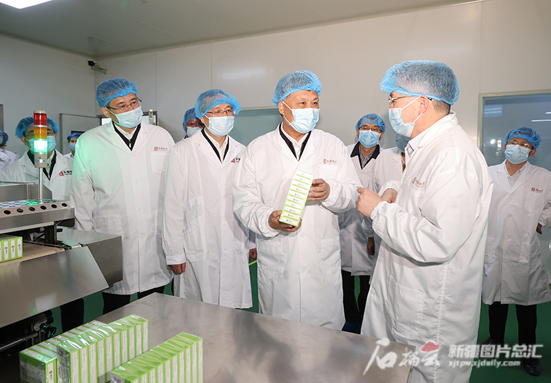 5月16日,自治區黨委書記馬興瑞在烏魯木齊調研。這是馬興瑞在新疆維吾爾藥業有限責任公司,了解企業生產運行流程和經營發展狀況。天山網-新疆日報記者 崔志堅 攝