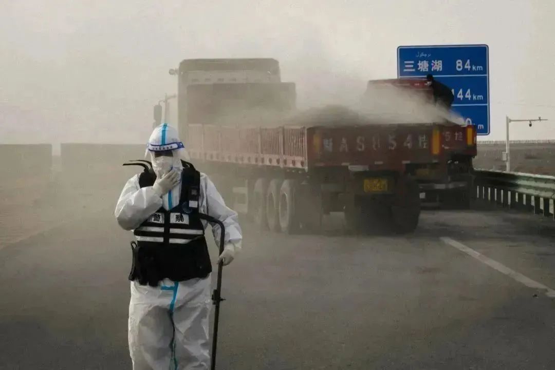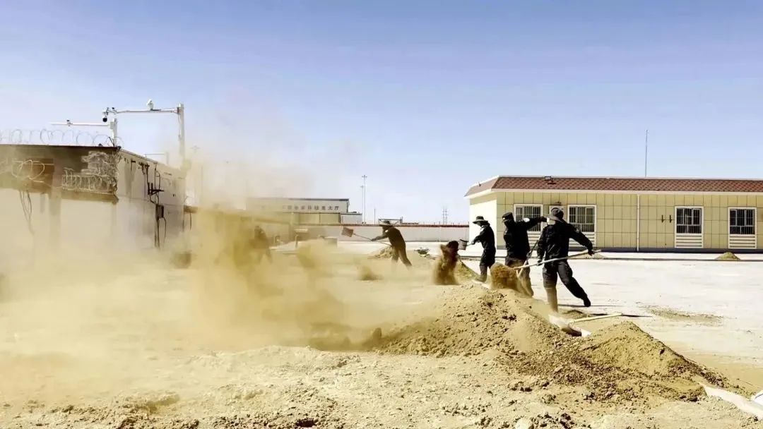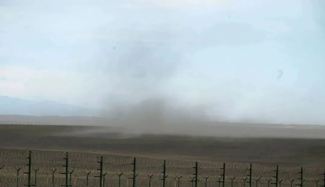恰逢四月風季,口岸日最大風力可達10-13級,黃沙被吹得四周彌漫。不到一刻鐘,整個口岸便被陰霾籠罩,裹挾著大風,米粒大的砂礫砸在臉上,民警不由地把棉衣裹緊,用衣帽遮住頭臉。
