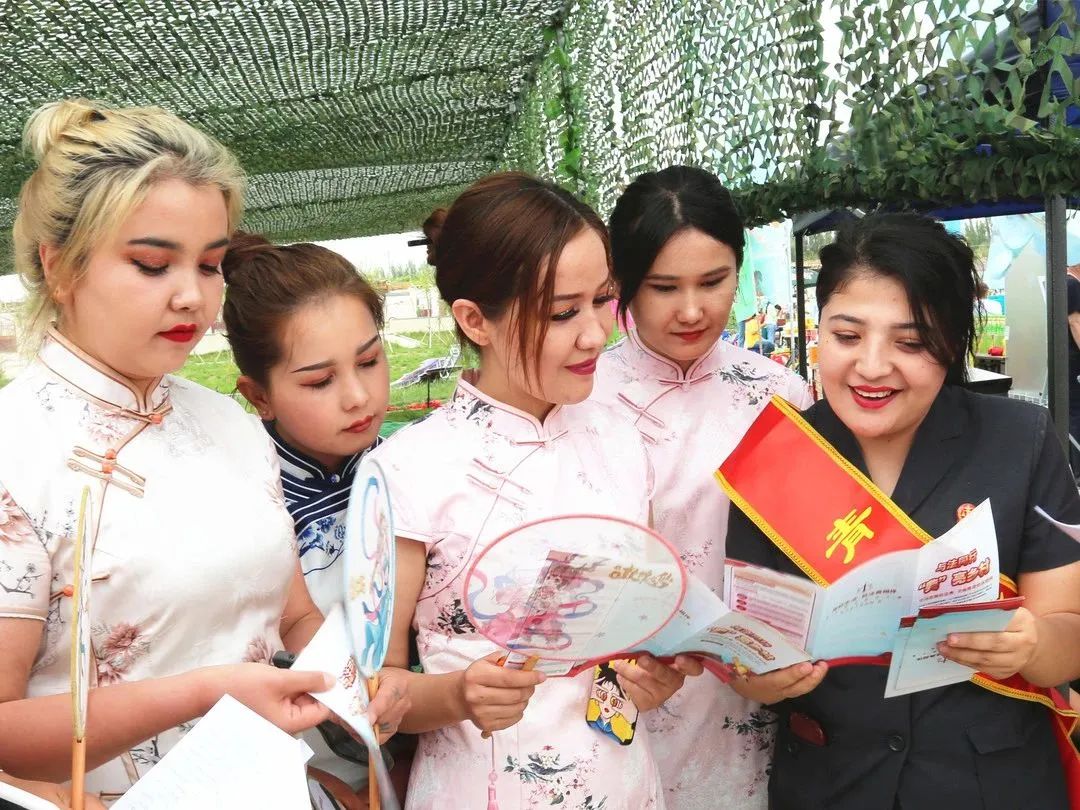 庫(kù)車(chē)市人民法院依托庫(kù)車(chē)市烏恰鎮(zhèn)首屆甬庫(kù)園文化旅游節(jié)開(kāi)展非遺普法宣傳活動(dòng)。“普法宣傳黨員志愿先鋒隊(duì)”在活動(dòng)現(xiàn)場(chǎng)一邊向群眾普及非遺文化,一邊發(fā)放普法手冊(cè),讓大家沉浸式感受古韻龜茲之美、絲路庫(kù)車(chē)之韻,在潛移默化中接受法治文化的熏陶。(宋玉姣)