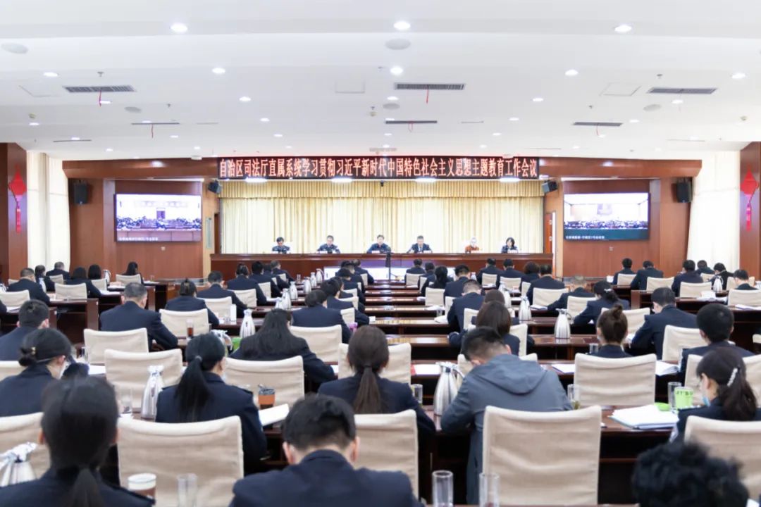 自治區(qū)司法廳深入學(xué)習(xí)貫徹習(xí)近平總書記關(guān)于開展主題教育系列重要講話精神,全面落實黨中央決策部署、自治區(qū)黨委和司法部要求,把深入開展主題教育作為堅定擁護“兩個確立”、堅決做到“兩個維護”的實際行動和重要檢驗,堅持同司法行政中心工作結(jié)合起來,高標(biāo)準(zhǔn)高質(zhì)量推動主題教育走深走實。