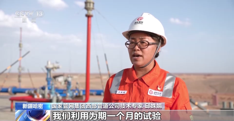 國家管網集團西部管道公司技術專家 邱姝娟:我們利用為期一個月的試驗,包括(管道的)充氫測試和(純氫)爆破兩個階段,來驗證管道設備的氫氣相容性、阻隔性以及設備連接處的密封性。
