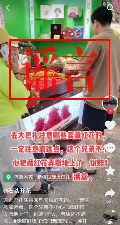 近日,部分網絡平臺傳發“去大巴扎不小心把藏紅花弄地上賠1萬”相關內容,引發部分網民關注。經與大巴扎街道核實,此事系新疆國際大巴扎某藏紅花商鋪老板與租客因店鋪租金問題發生爭執時不慎碰撒藏紅花,后被游客拍攝上傳某視頻平臺引起,雙方在現場并未談及賠償事宜。所傳內容為網絡謠言。