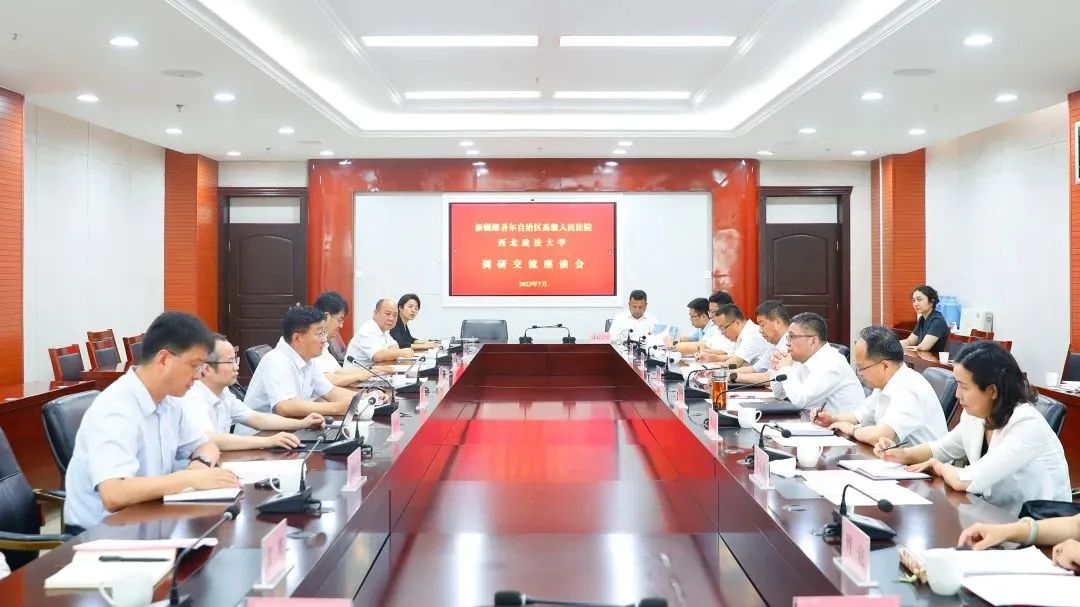 新疆平安網(wǎng)訊 為深入學(xué)習(xí)貫徹習(xí)近平法治思想,切實(shí)加強(qiáng)政法單位與院校合作、協(xié)同培養(yǎng)法治人才,促進(jìn)共同發(fā)展,7月20日,西北政法大學(xué)黨委副書(shū)記、校長(zhǎng)范九利等一行到自治區(qū)高級(jí)人民法院調(diào)研并參加座談會(huì)。高院院長(zhǎng)、黨組副書(shū)記迪里夏提·沙依木出席座談會(huì)。