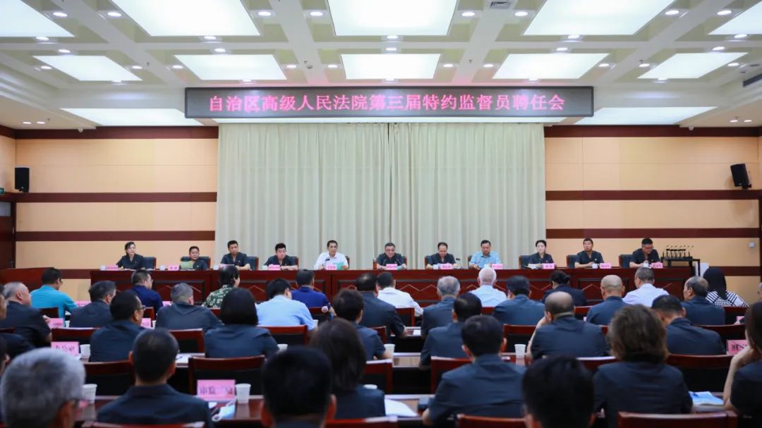 新疆平安網訊 為深入推進學習貫徹習近平新時代中國特色社會主義思想主題教育,更好發揮特約監督員作用,7月25日,自治區高級人民法院舉行第三屆特約監督員聘任會。自治區高級人民法院院長、黨組副書記迪里夏提·沙依木出席會議并講話,高院黨組副書記、副院長周志豪主持會議。高院黨組成員、審委會專職委員為到場的特約監督員頒發聘書,黨組成員、副院長劉霞宣讀聘任決定。
