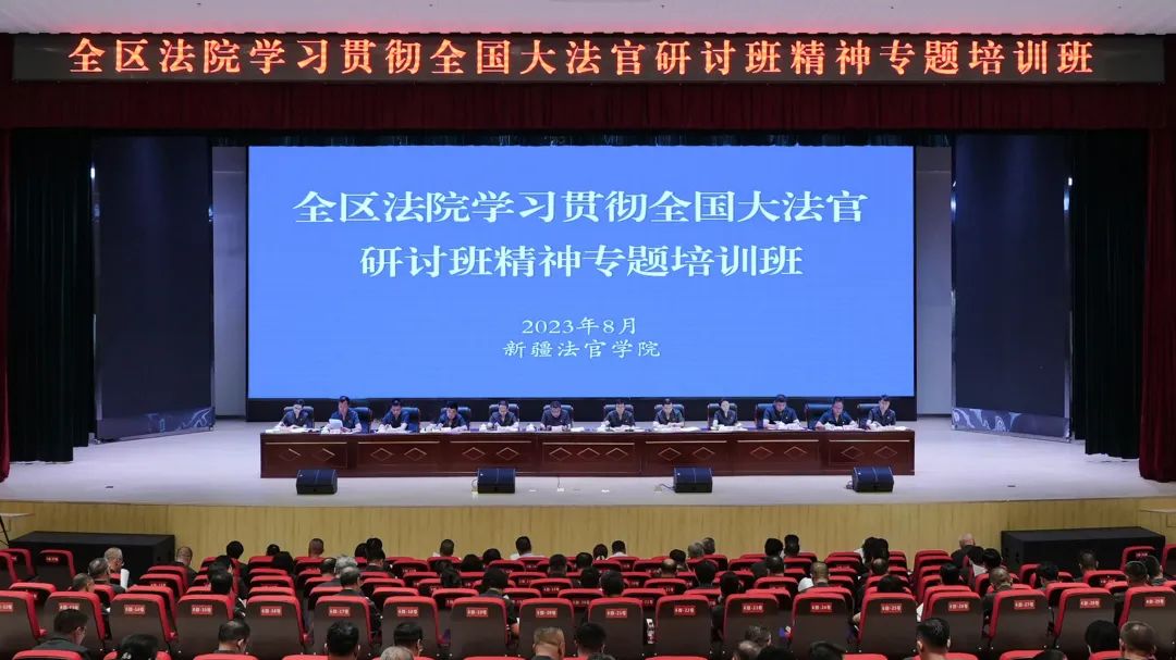 新疆平安網訊 8月7日至8日,全區法院學習貫徹全國大法官研討班精神專題培訓班在新疆法官學院舉行,深入傳達學習貫徹全國大法官研討班精神,共商法院發展大計、共議全面提升之法,做實為大局服務、為人民司法,努力以審判工作現代化服務保障中國式現代化的新疆實踐。自治區高級人民法院院長、黨組副書記迪里夏提·沙依木作專題輔導,黨組書記都紅巖作總結講話。