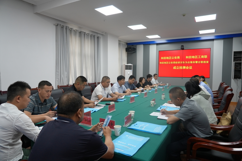 儀式上,集中學習了《新疆維吾爾自治區公安經偵部門為企服務警企聯絡室建設指引(試行)》的通知,解讀了警企聯絡室的職能和作用,并現場解答了相關政策及問題。地區公安局、地區工商聯有關領導共同為警企聯絡室揭牌。