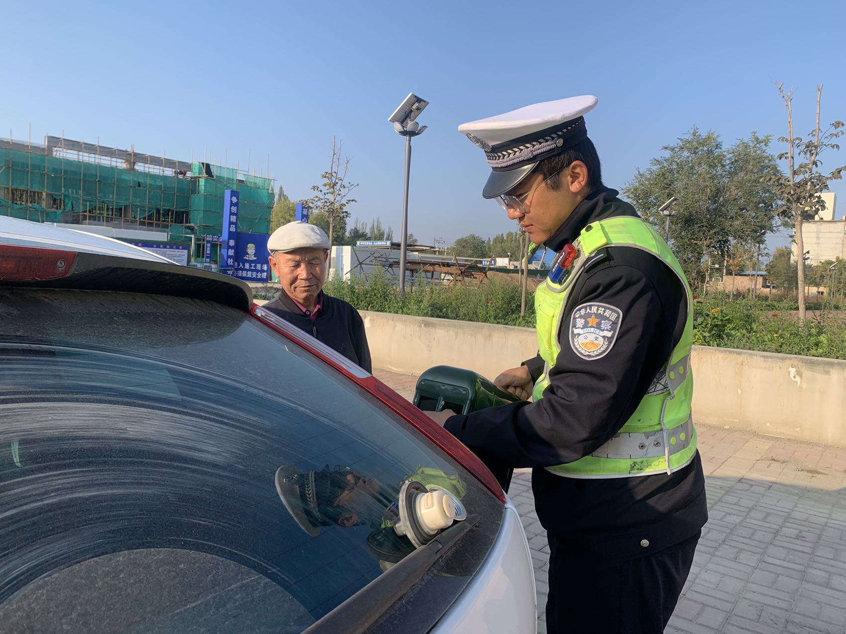 16時,我與同事巡邏至塔秀鄉振興東路時,發現一輛小型客車停在路邊,駕駛人站在車旁向我們招手,我趕緊換上白色警帽上前詢問情況。