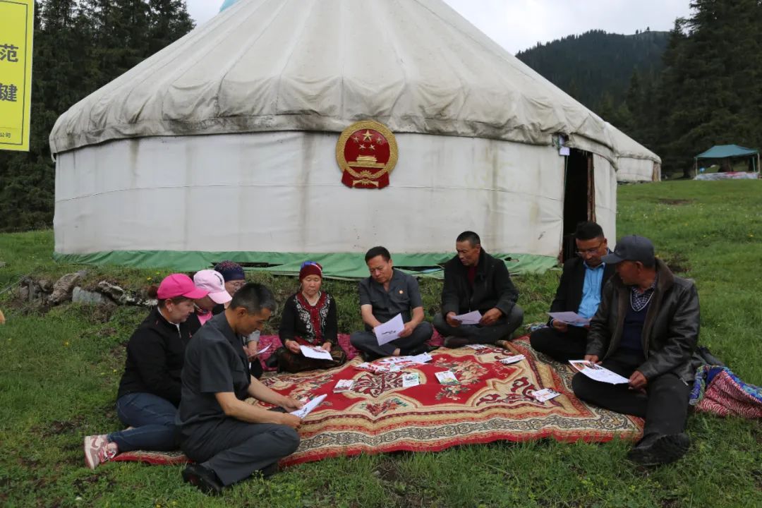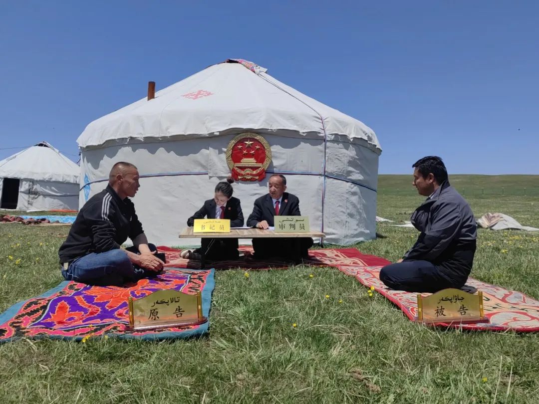 伊犁州州直法院在那拉提、喀拉峻等景區設置氈房法庭、馬背法庭,讓優質司法服務惠及八方游客。