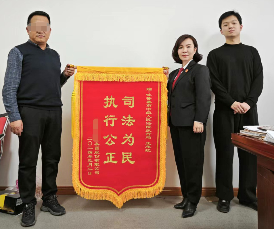 2024年1月2日,吐魯番市某單位將案款通過財(cái)政支付到某建設(shè)集團(tuán)公司“一案一賬戶”中,王志紅聯(lián)系某建設(shè)集團(tuán)公司領(lǐng)款。次日,某建設(shè)集團(tuán)公司就派人來法院辦理了領(lǐng)款手續(xù)并出具結(jié)案申請書,同時(shí)帶來的,還有一面贈(zèng)給法院執(zhí)行局的錦旗。