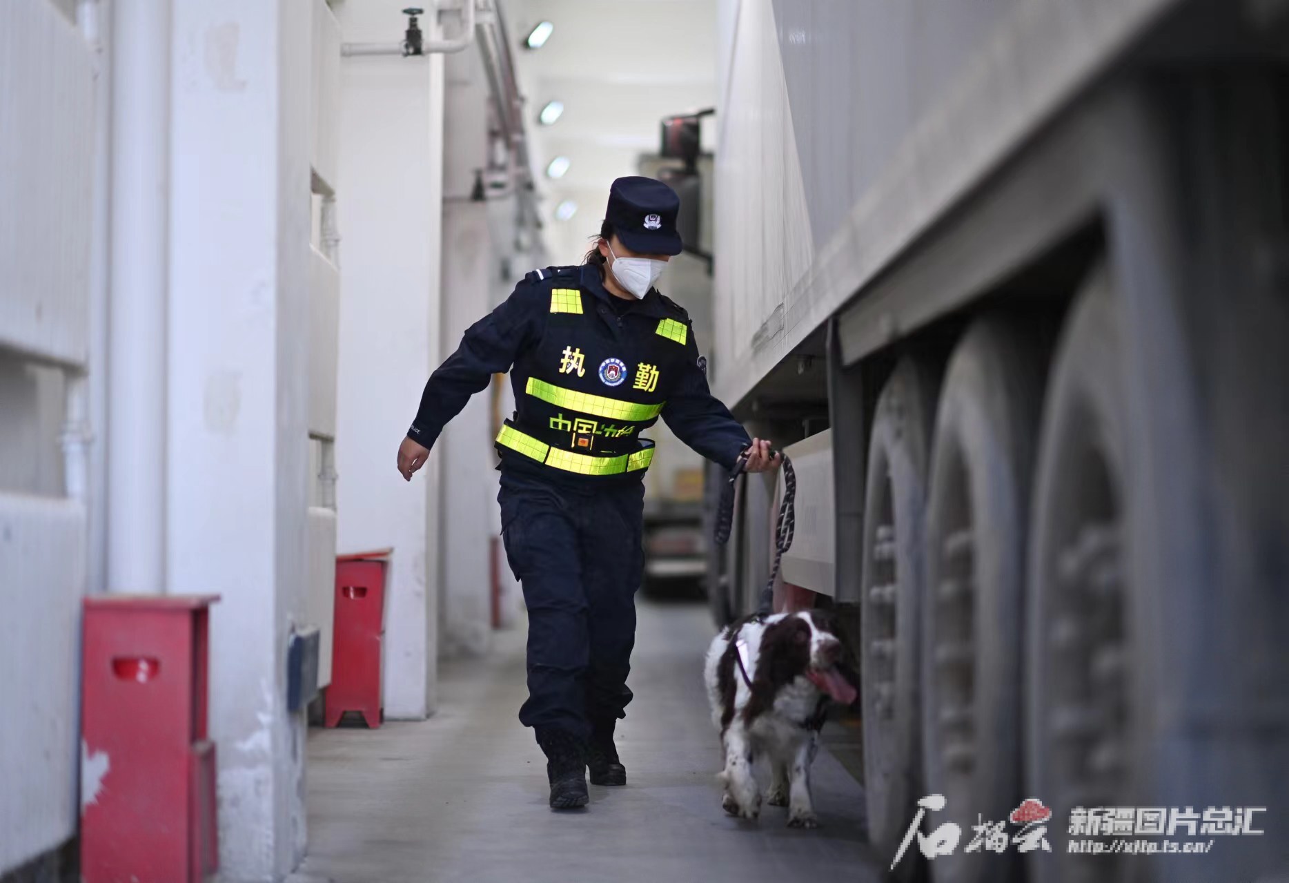 這一天,阿拉山口出現(xiàn)風(fēng)吹雪天氣,風(fēng)力達到11級。10時,劉欣牽著警犬“康欣”,準(zhǔn)時出現(xiàn)在阿拉山口出入境邊防檢查站公路執(zhí)勤現(xiàn)場。