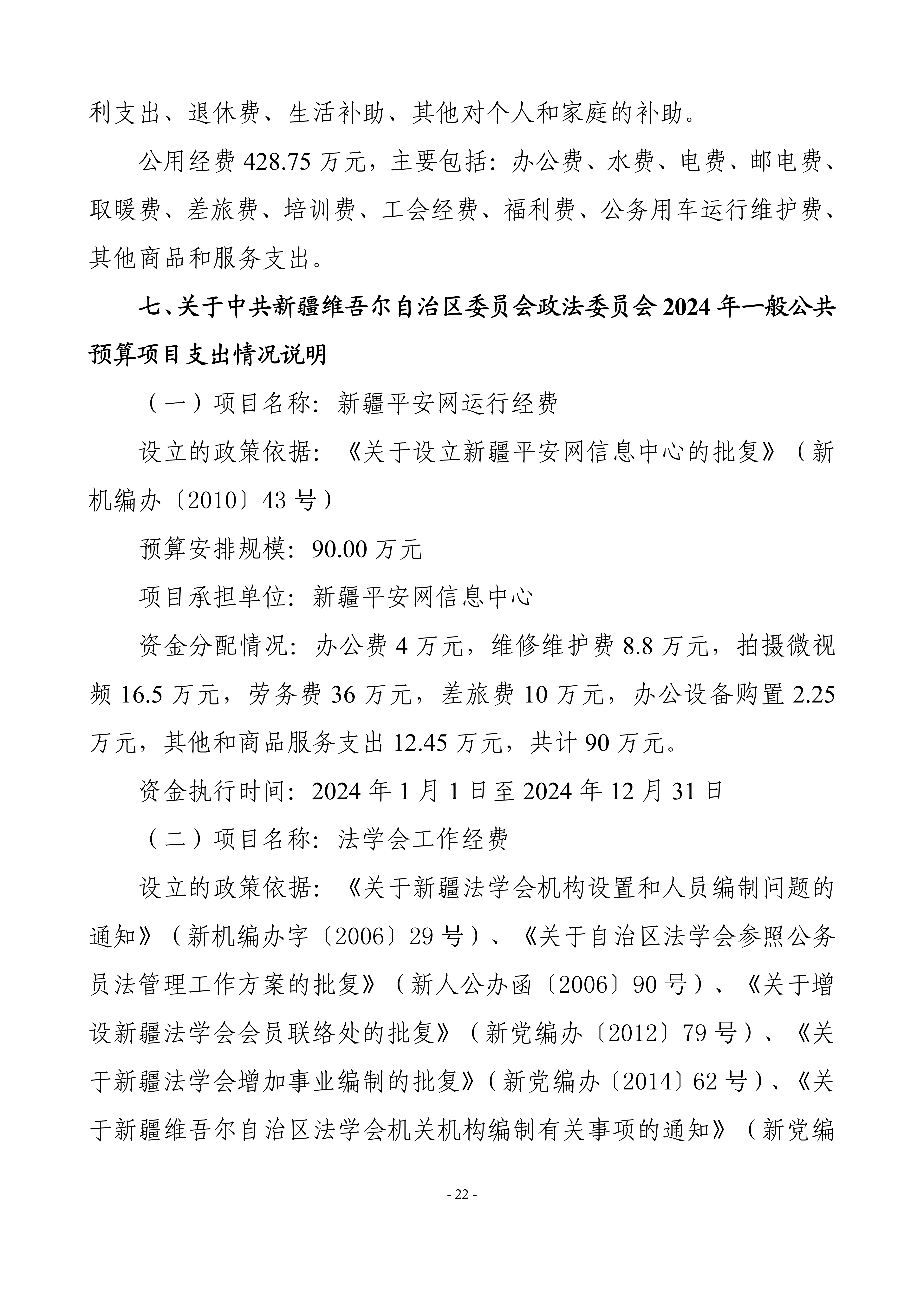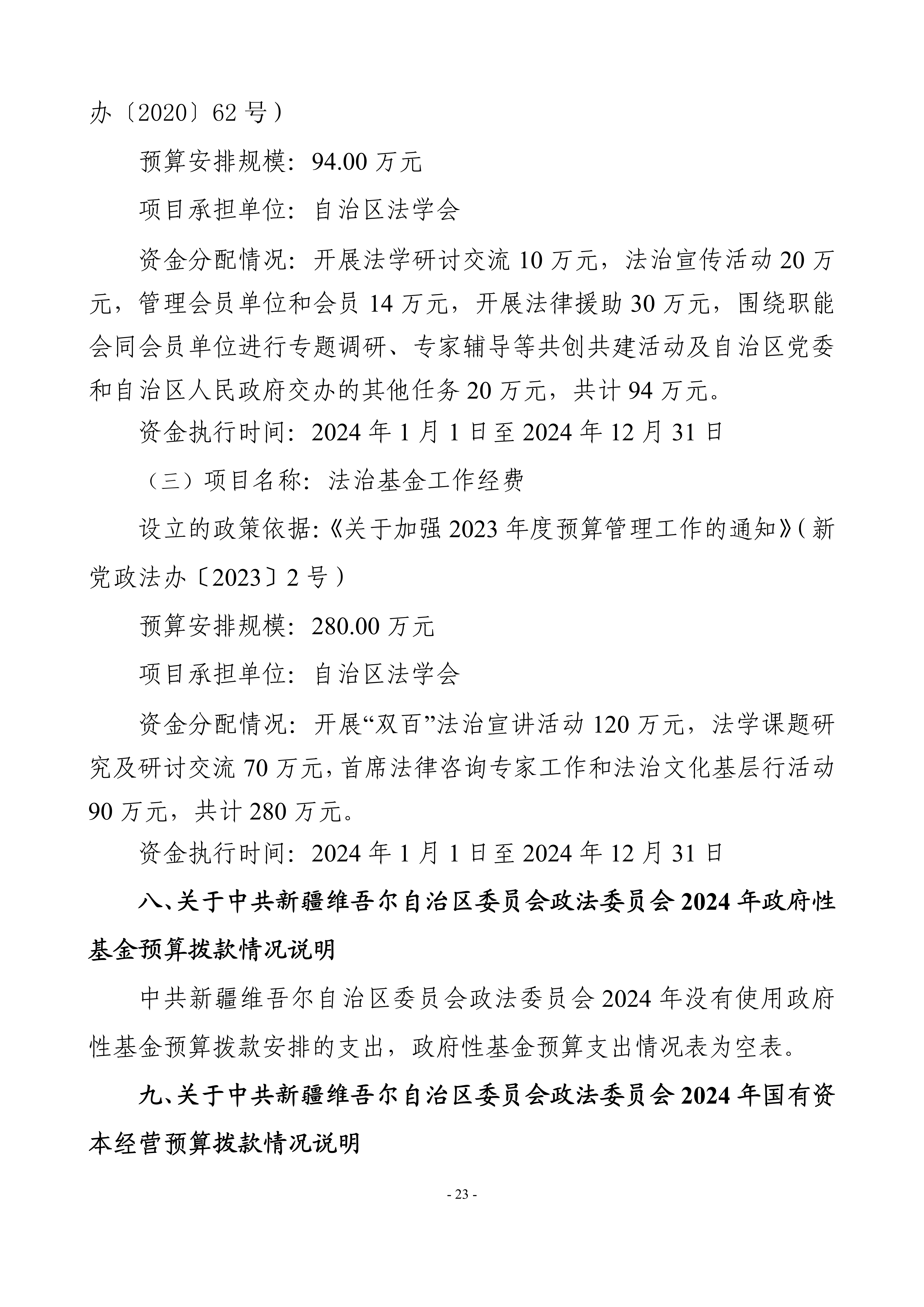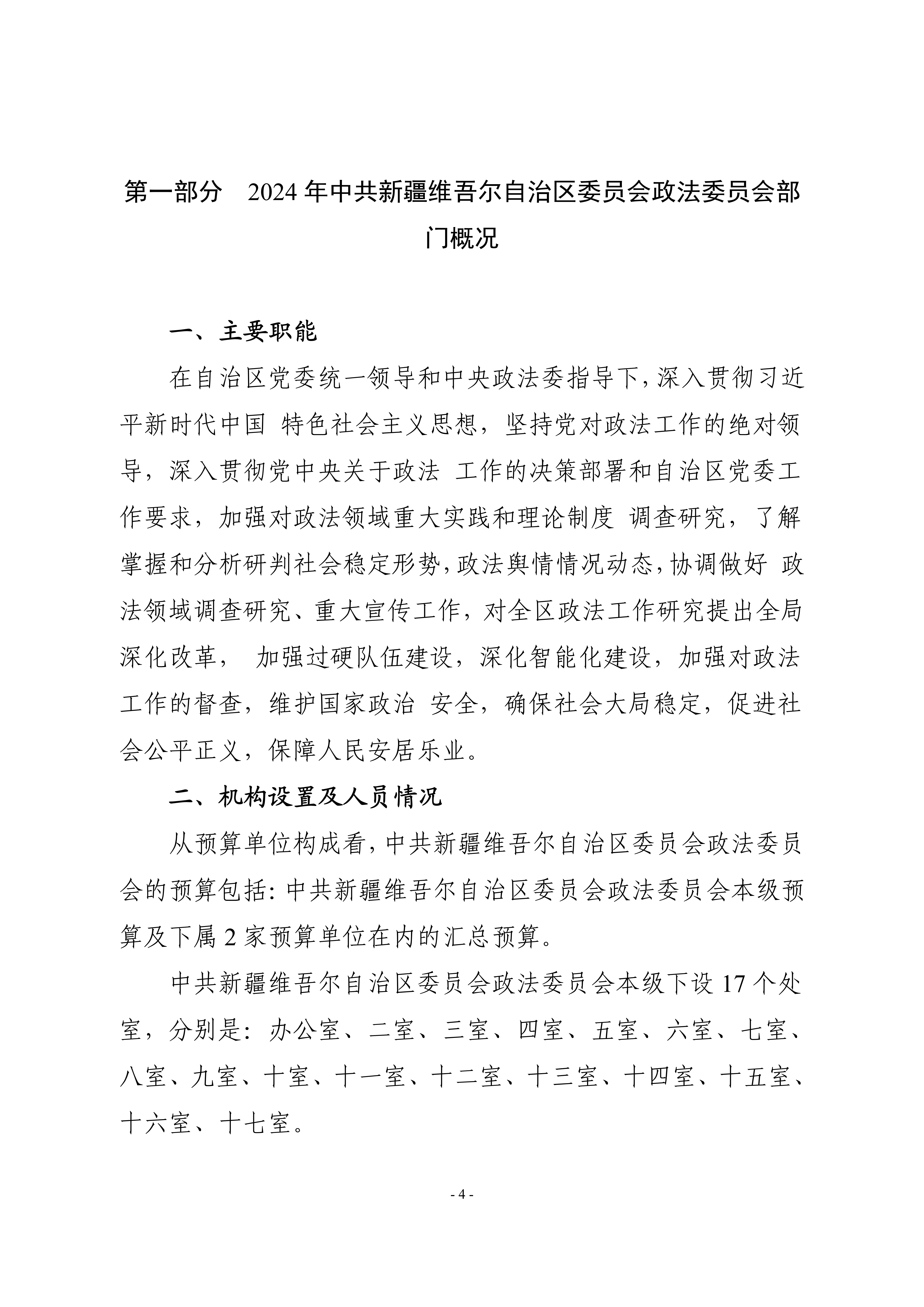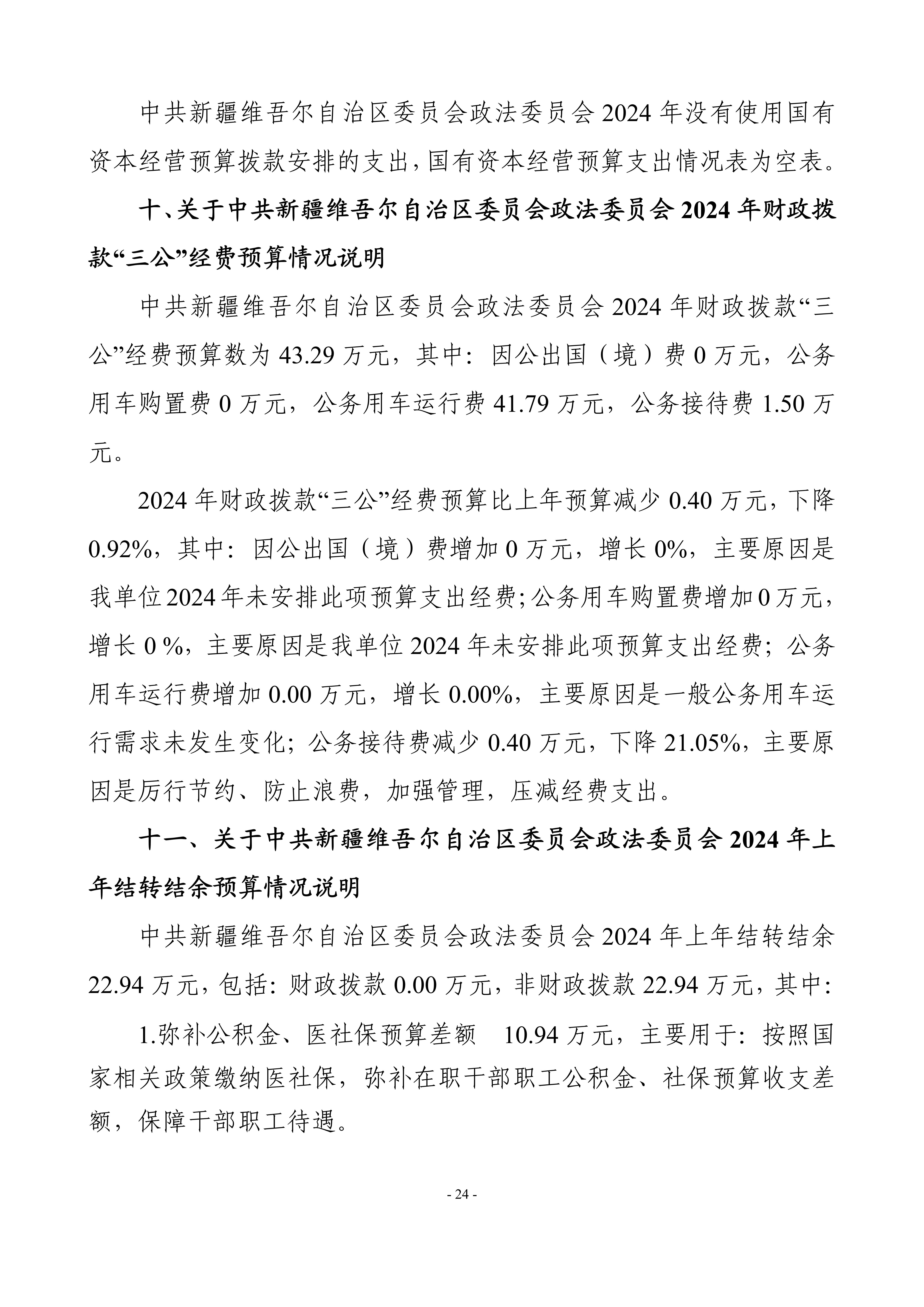 中共新疆維吾爾自治區委員會政法委員會部門2024年度預算公開報告