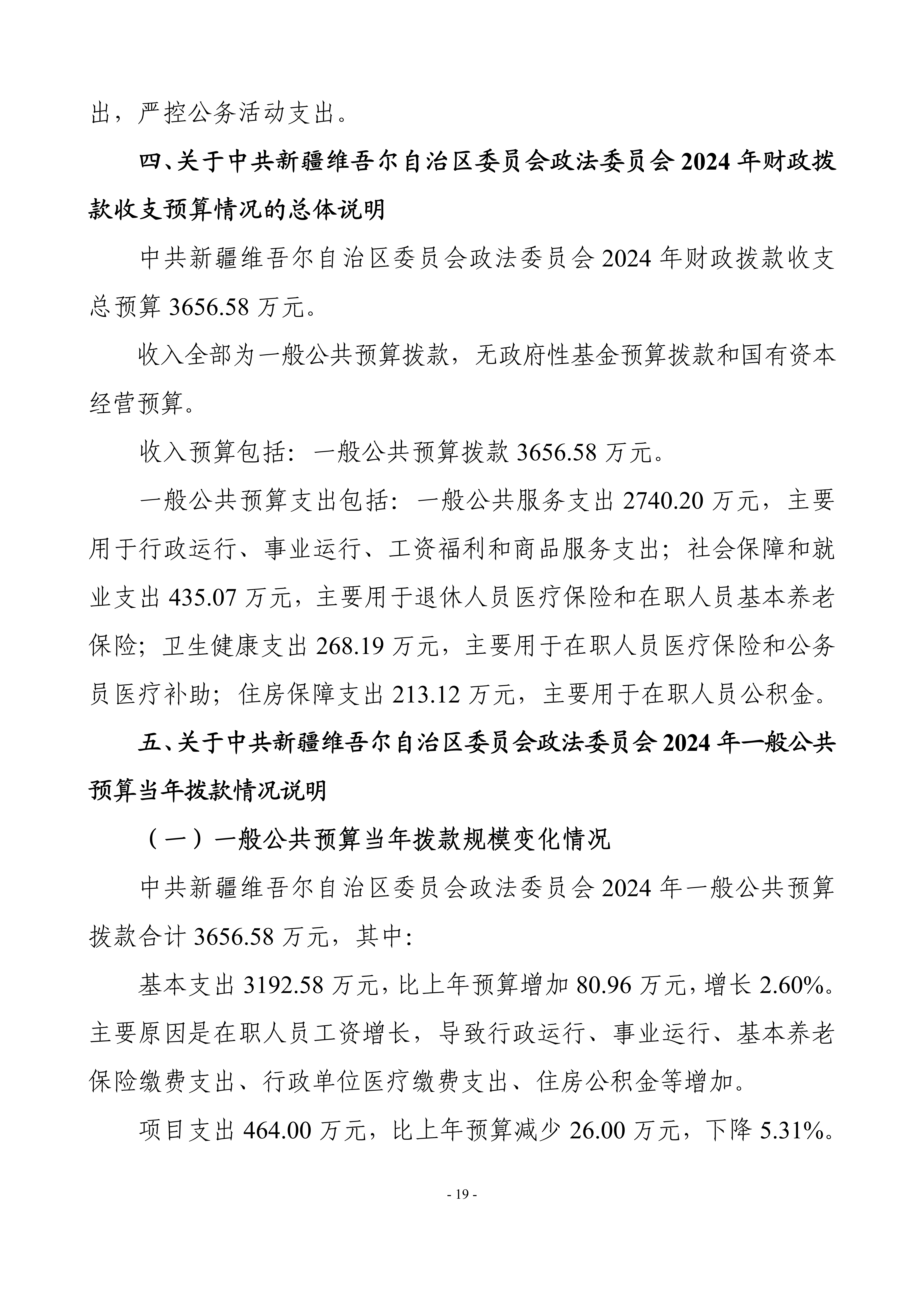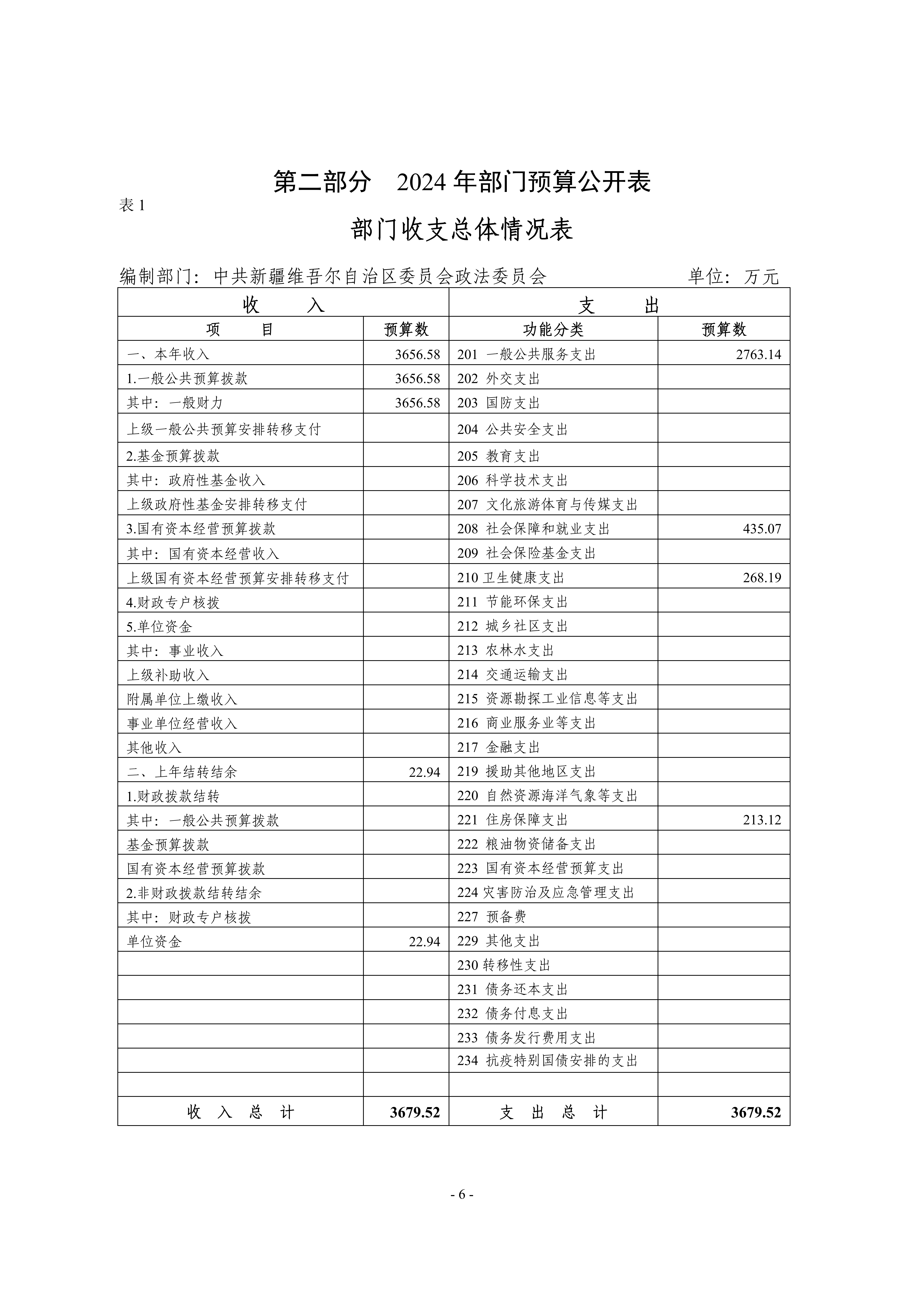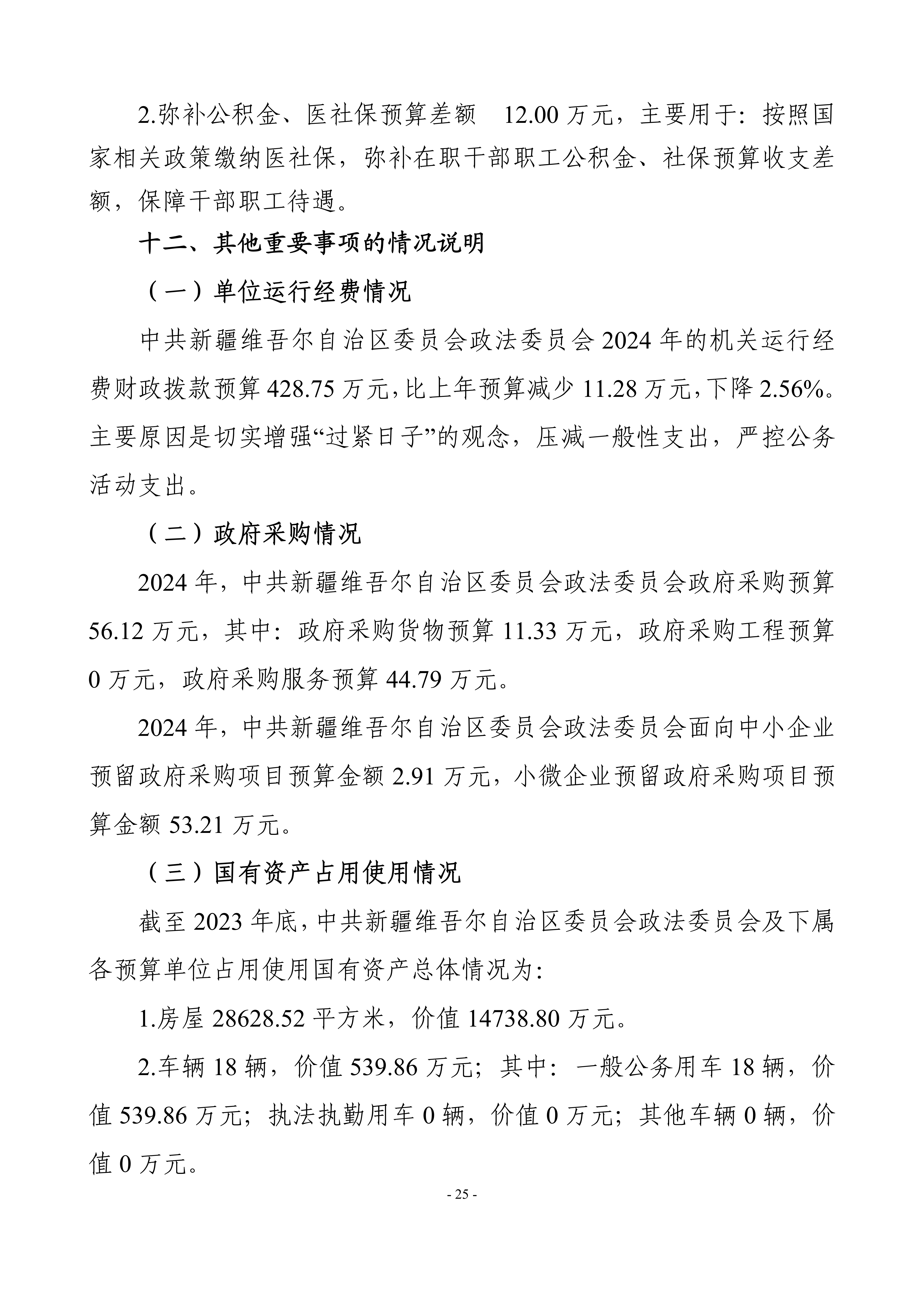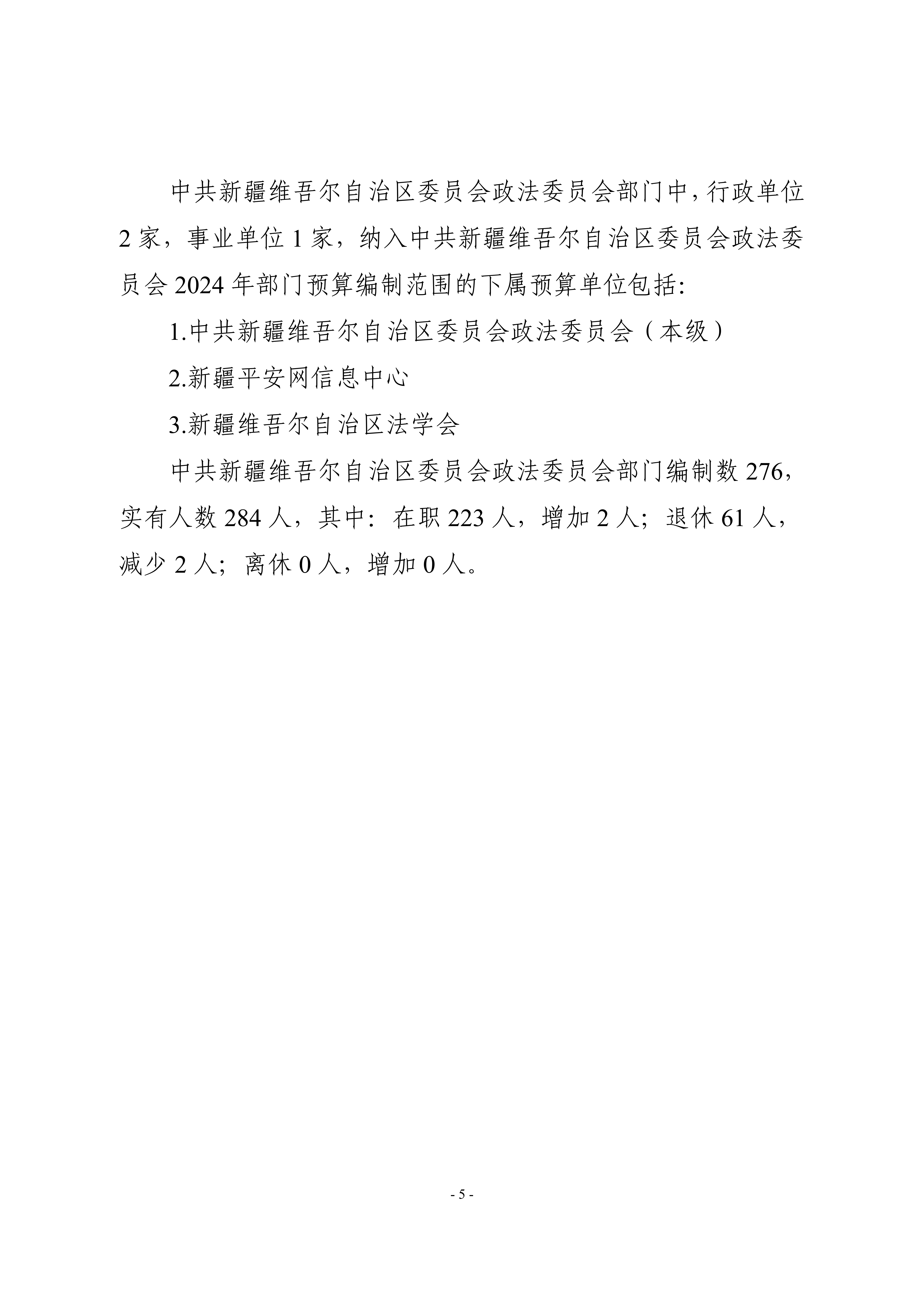 中共新疆維吾爾自治區委員會政法委員會部門2024年度預算公開報告