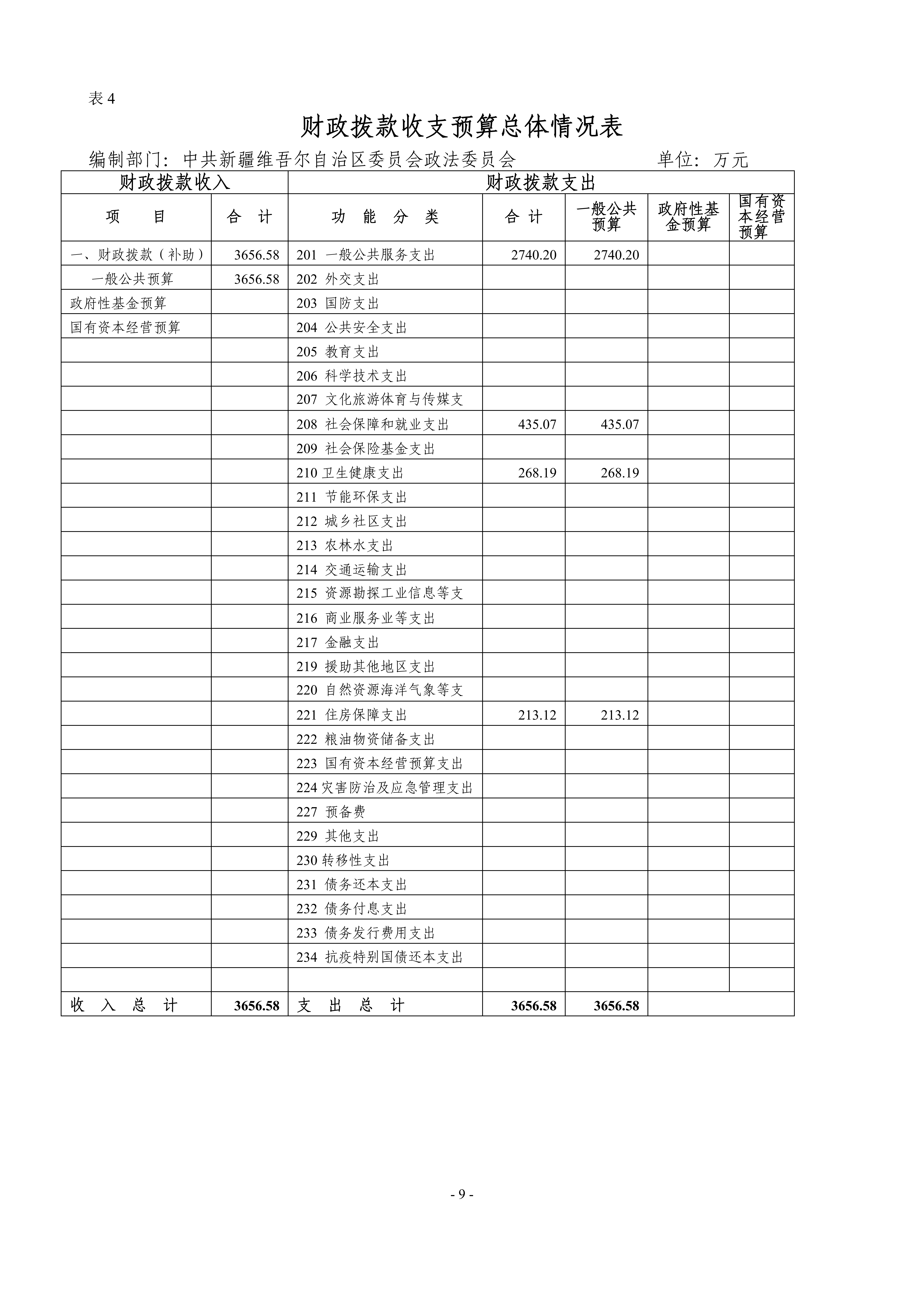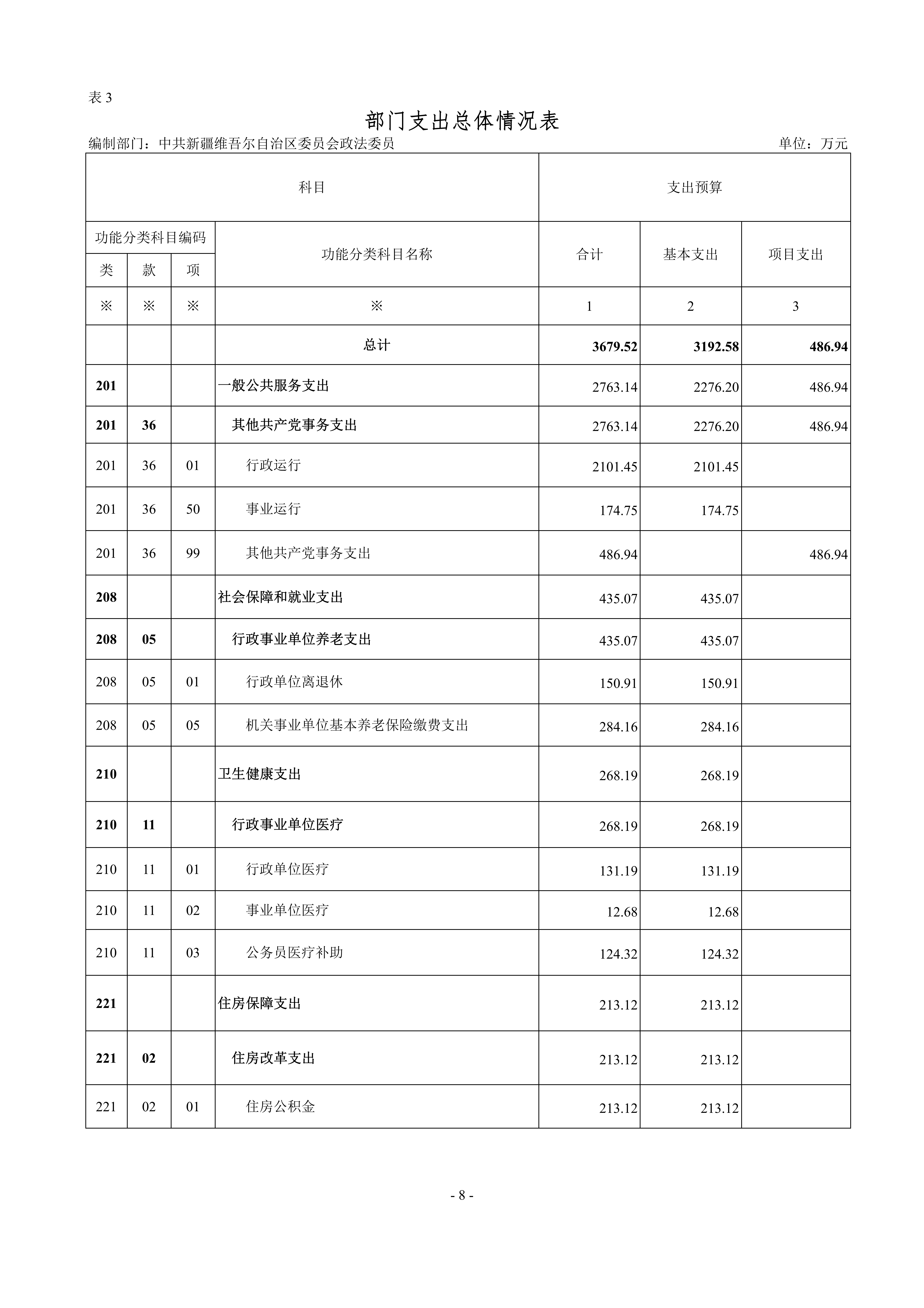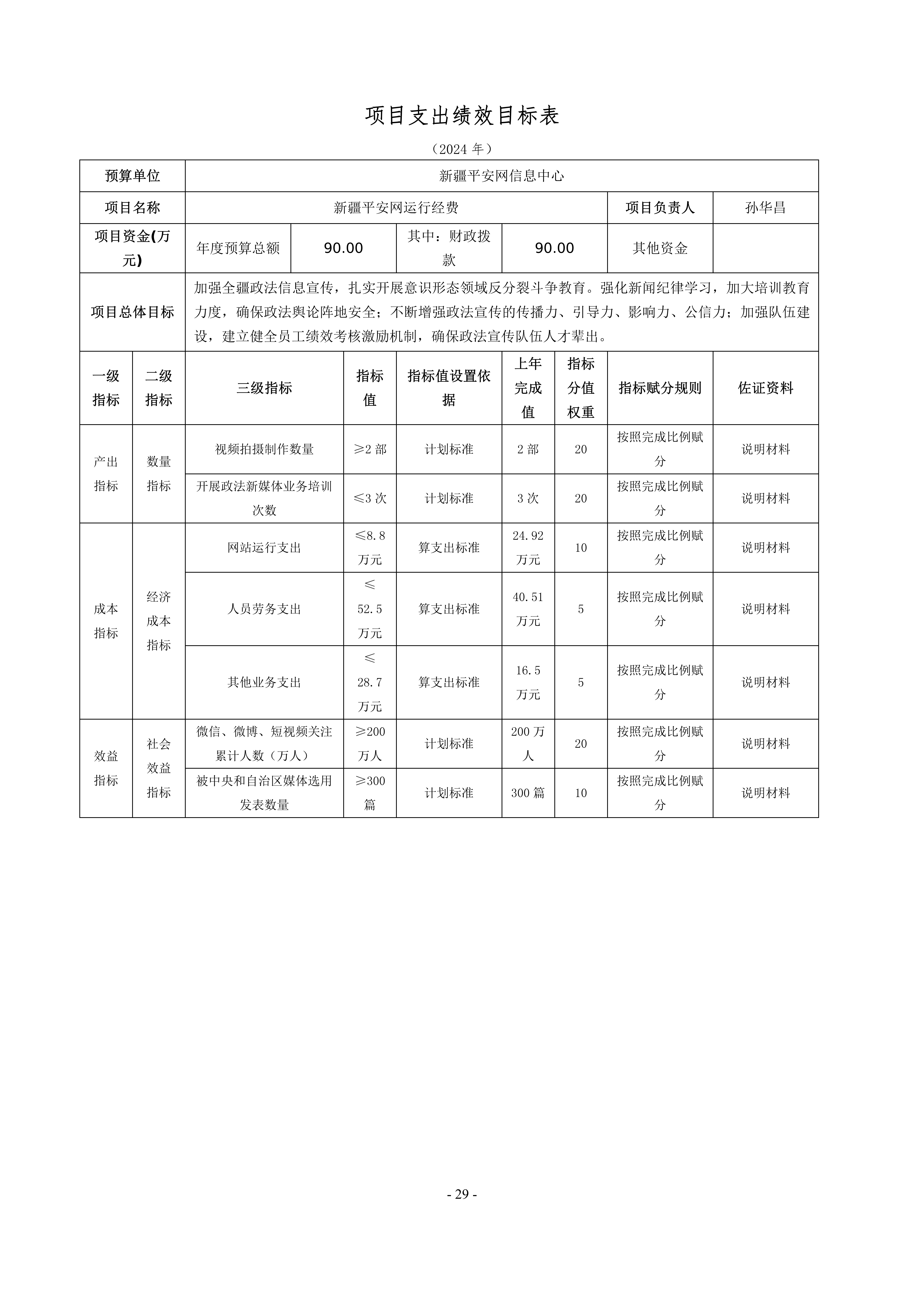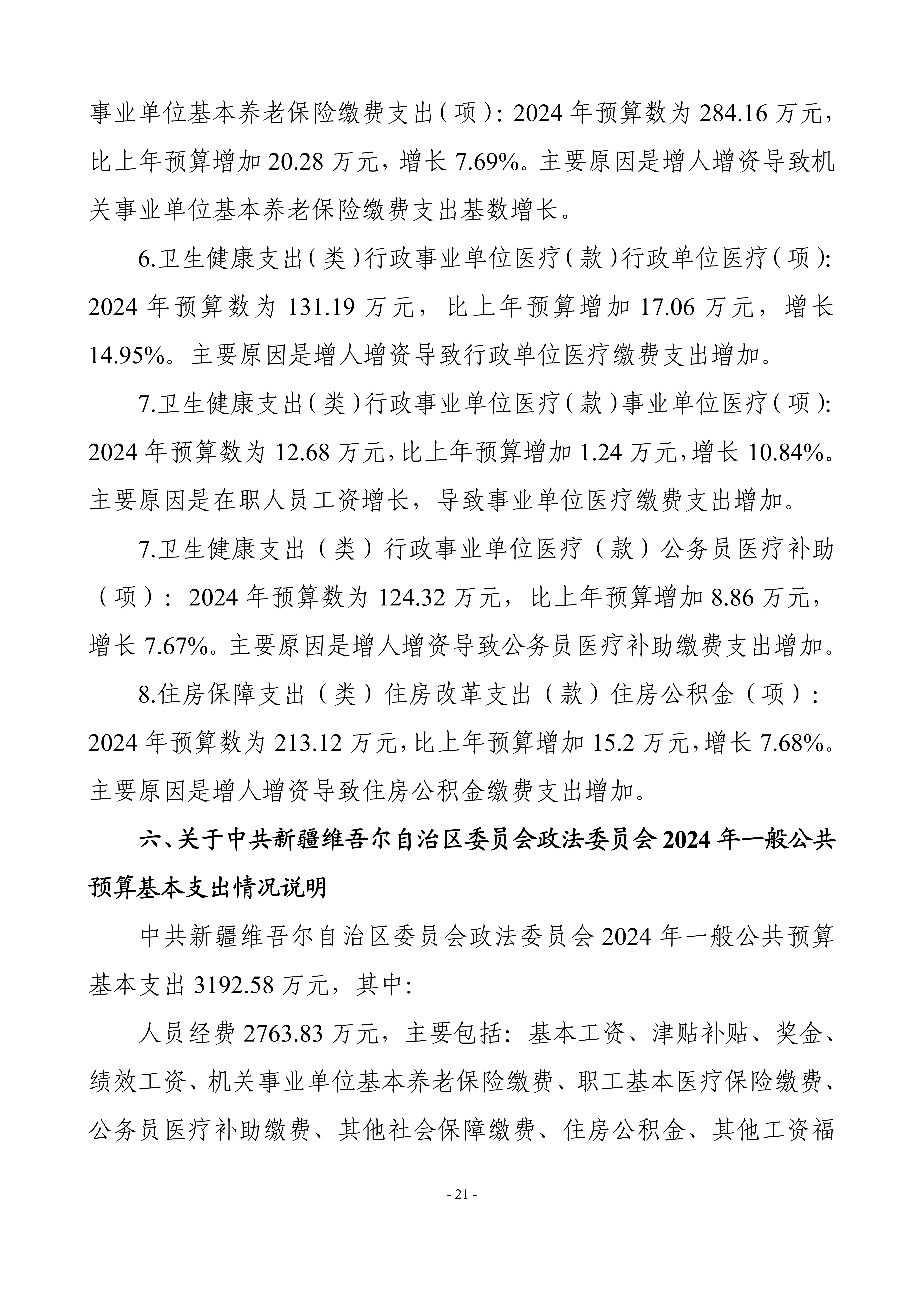 中共新疆維吾爾自治區委員會政法委員會部門2024年度預算公開報告