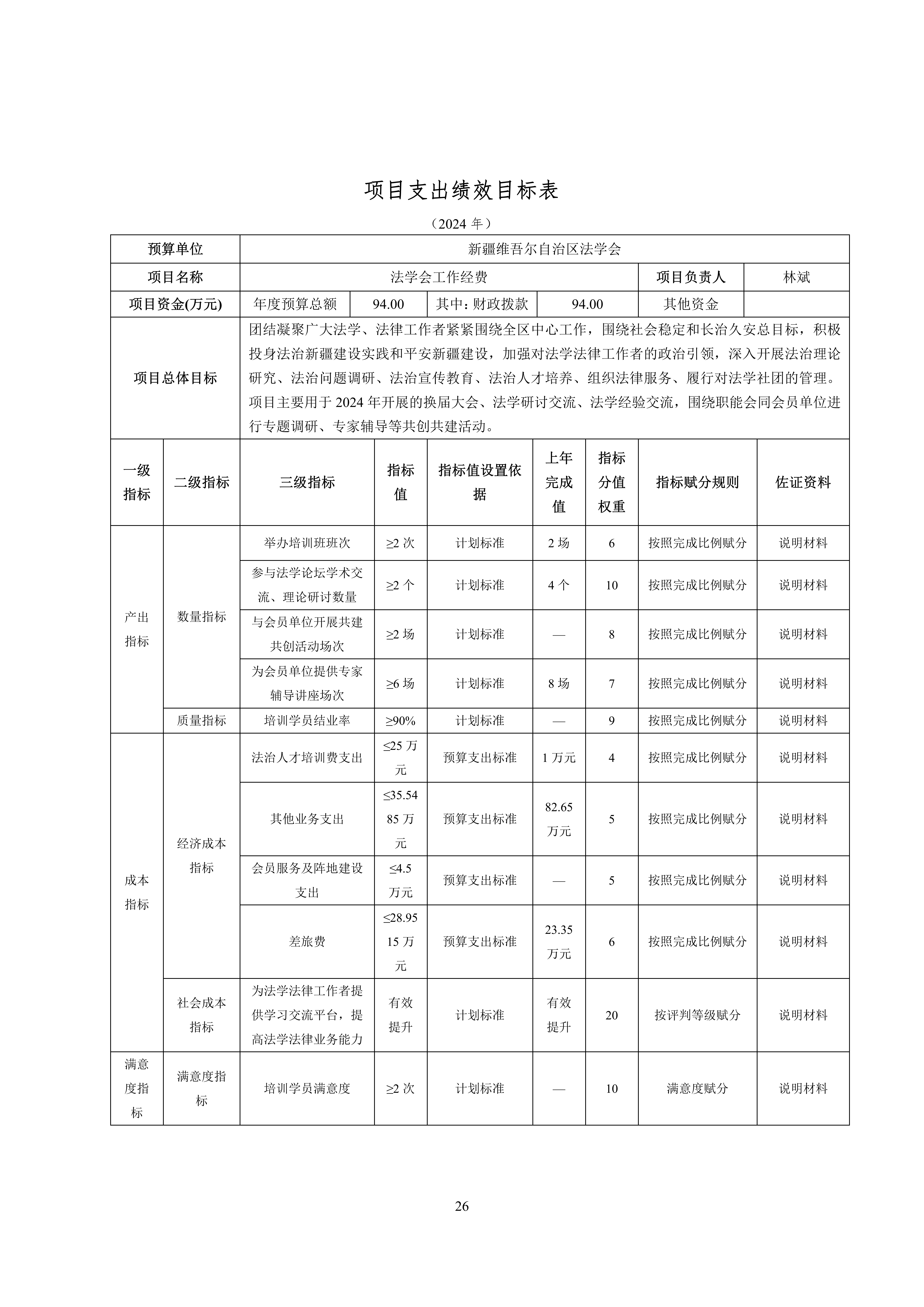 新疆維吾爾自治區法學會2024年單位預算公開報告
