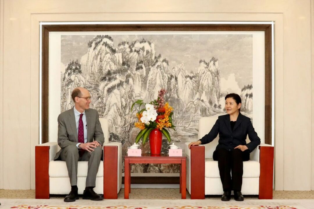 3月27日,司法部部長賀榮在京會見北京大學法學院“全球教席學者”、哥倫比亞大學法學院中國法研究中心主任李本教授,就仲裁、公證、商事調解等專業領域問題進行了務實坦誠的友好交流。北京大學法學院、中國社會科學院國際法研究所相關負責人參加會見。(攝影 滿博)