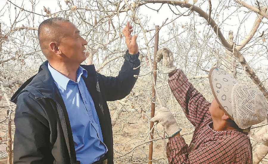 “老唐,我來了!”4月6日一早,大嗓門、皮膚黝黑的阿瓦提縣人民檢察院駐阿瓦提縣阿瓦提鎮團結社區工作隊隊長張春健拿著剪刀,走進該社區蘋果種植戶唐剛全的果園,修剪果樹枝。