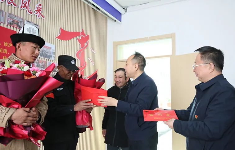 新疆平安網訊 為弘揚社會正氣,倡導見義勇為風尚,4月13日,自治區黨委政法委、自治區見義勇為基金會相關工作人員一行來到喀什地區塔什庫爾干塔吉克自治縣,看望慰問榮登中央政法委2024年第一季度見義勇為勇士榜的排孜拉·凱里地別克、木爾扎拜克·排孜拉父子,開展交流座談并送上鮮花和慰問金。