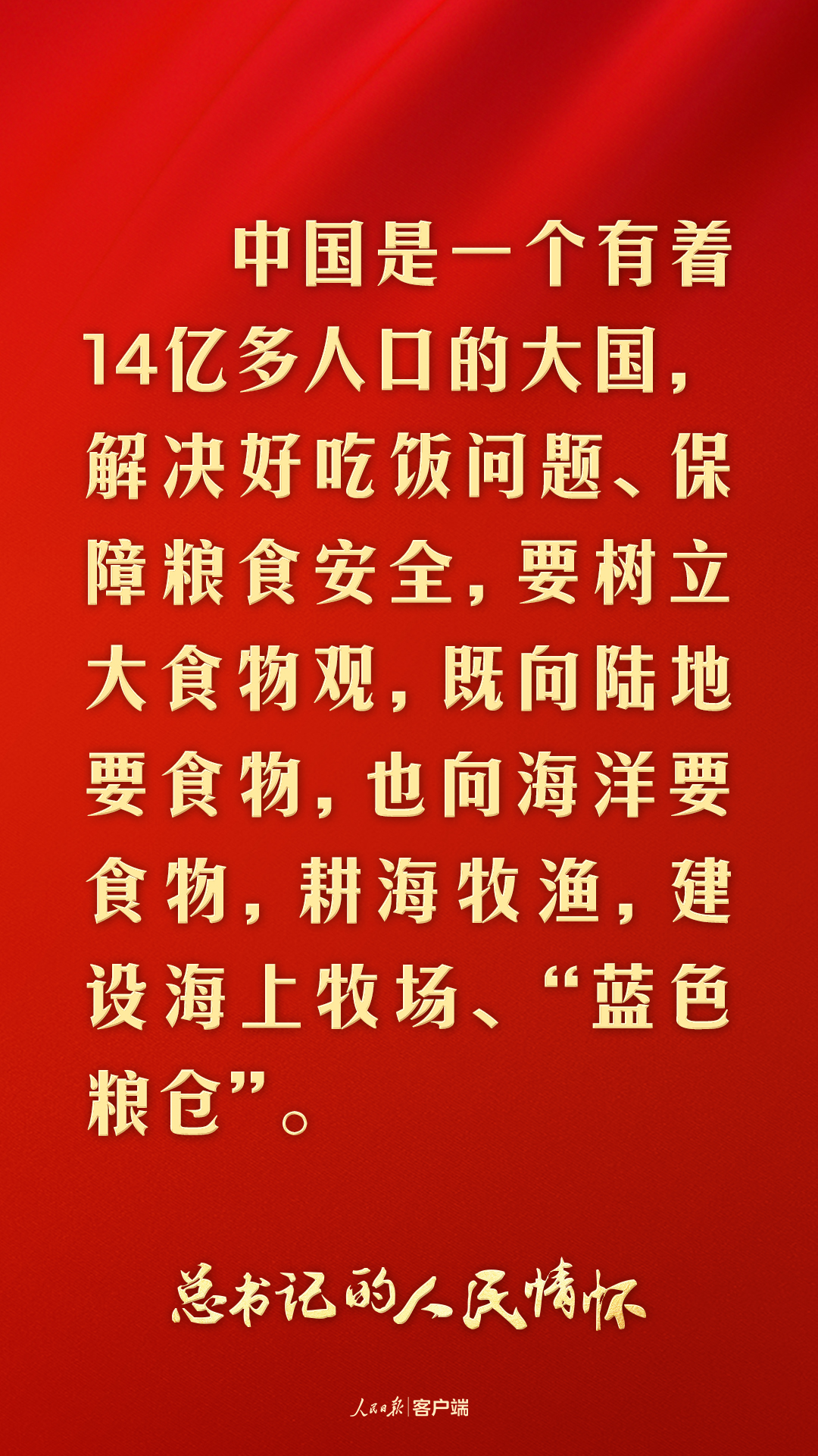 2023年4月,習近平總書記在廣東考察時指出:“解決好吃飯問題、保障糧食安全,要樹立大食物觀,既向陸地要食物,也向海洋要食物,耕海牧漁,建設海上牧場、‘藍色糧倉’。”