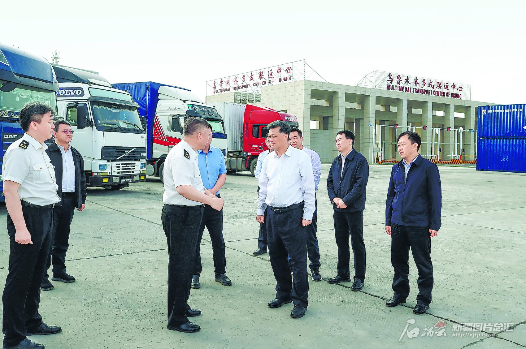 烏魯木齊國際陸港區通過實施“屬地直通”模式,有效降低通關時長和運輸成本;創新推出國際道路運輸車輛“軟篷施封”模式,提高了國際運輸效能和便捷度,增強了國內車輛在涉外運輸車輛上的競爭力。馬興瑞來到陸港區多式聯運中心集裝箱堆場,同海關、商務部門和新疆商貿物流集團負責同志交流,察看國內軟篷車、外籍車輛和TIR(國際公路運輸系統)運輸車輛,對他們創新提升國際運輸效能的做法表示肯定。在聽取有關工作介紹后,馬興瑞強調,要圍繞高質量建設新疆自貿試驗區,持續拓展業務空間,一步一步把產業聚集起來、做大做強。要積極鞏固和增強新疆對外貿易良好態勢,持續增強國際貿易活力,提升貨物通關效率,有效對接國內需求擴大進口,不斷提升對外開放層次和水平。