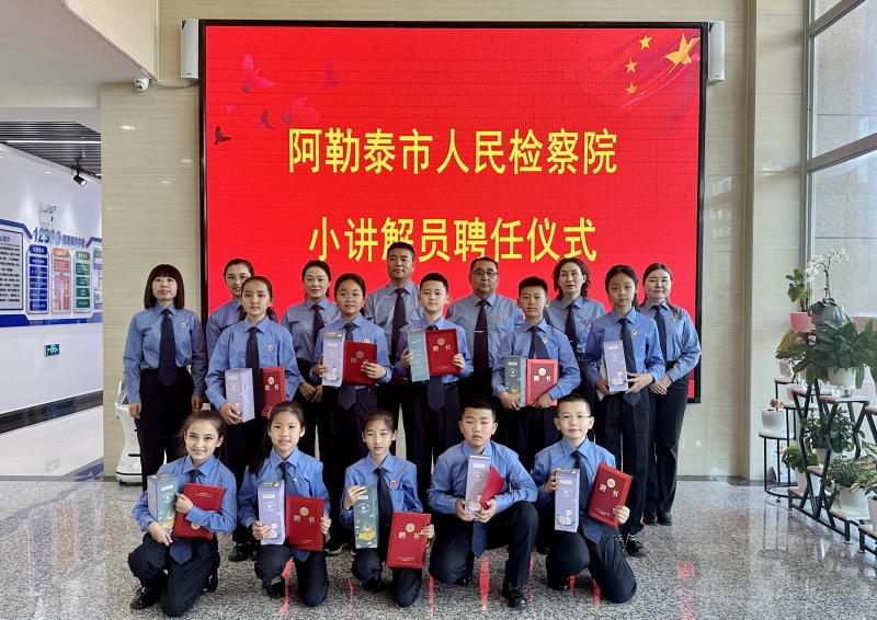 “拿上證書,從今天開始,你們就是小小法治講解員了……”5月27日,在“六一”國際兒童節來臨之際,阿勒泰市人民檢察院結合阿勒泰市“童心向黨 樂在金山”我的阿勒泰·非常“6+1”兒童節系列之“樂在實踐”活動,舉行首批小講解員聘任儀式。
