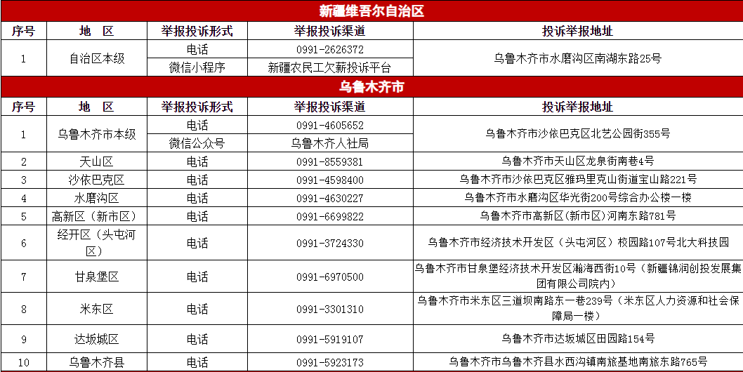 新疆公布各級勞動保障監察機構舉報投訴渠道
