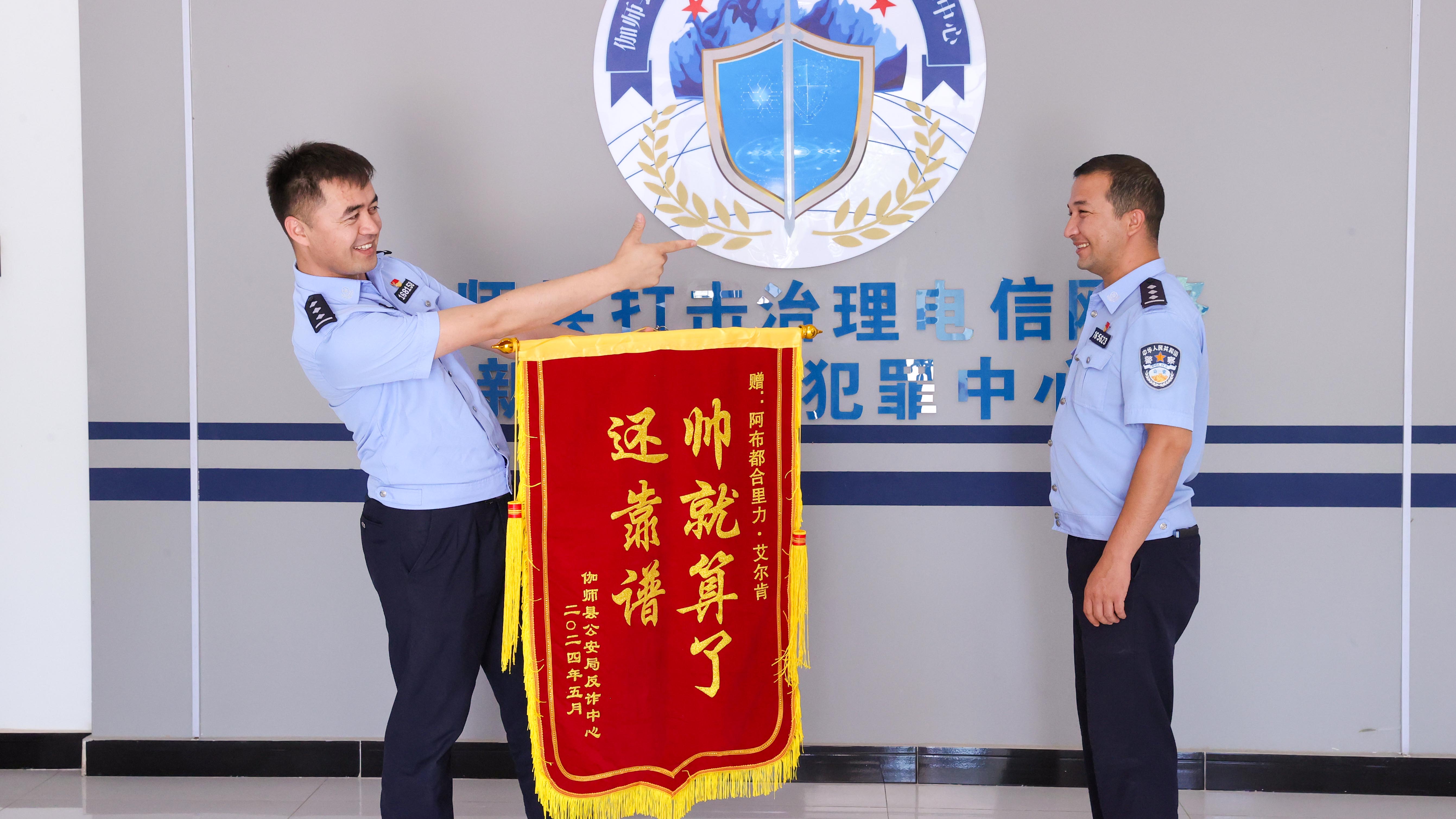 6月12日,新疆維吾爾自治區喀什地區伽師縣公安局收到了來自3000公里外河南省安陽市安陽縣崔女士寄來的一面錦旗,表達對辦案民警幫其挽回被騙資金的感謝。