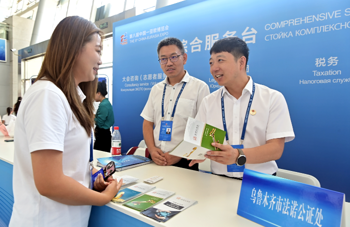 “我們公證處選派了4名公證員參加本屆博覽會,對涉博覽會公證事項提供急事急辦、優先受理、優先出證等服務?!?月29日,烏魯木齊市法諾公證處主任李虎對記者說。