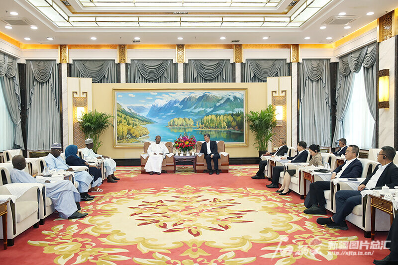 7月3日,自治區黨委書記馬興瑞、自治區主席艾爾肯·吐尼亞孜在烏魯木齊會見來新疆訪問的乍得愛國拯救運動總書記巴達及所率代表團一行。天山網-新疆日報記者 崔志堅攝