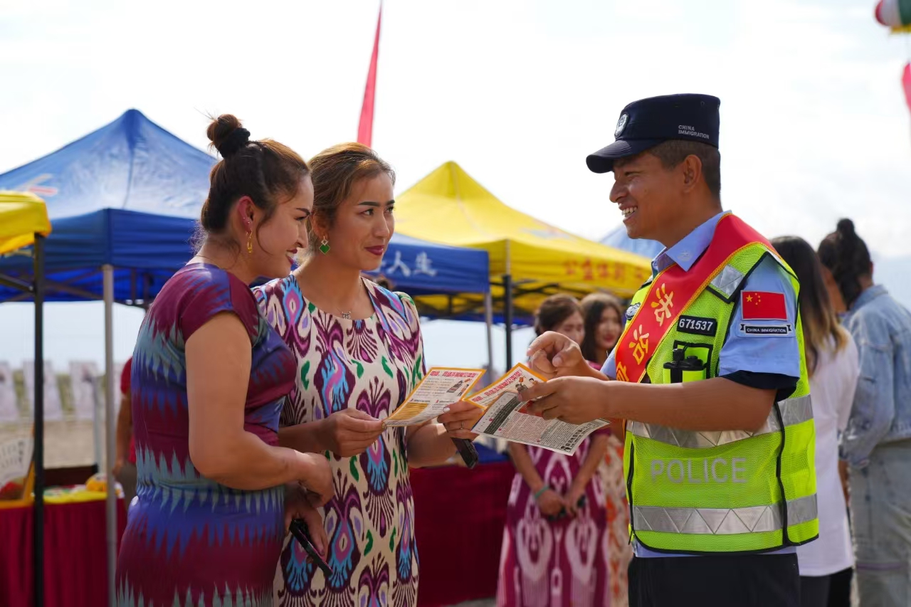 8月11日,2024“豫見新疆”重走玄奘之路自行車聯(lián)賽暨中國·環(huán)塔自行車公開賽(烏什站)山地賽火熱開賽,來自全國各地的騎行選手“騎”享美景,同臺“競技”。新疆阿克蘇邊境管理支隊(duì)民警堅(jiān)守崗位,頂烈日、冒酷暑,開展巡邏值守、治安防控、為群眾服務(wù)等工作,全力保障賽事順利進(jìn)行。