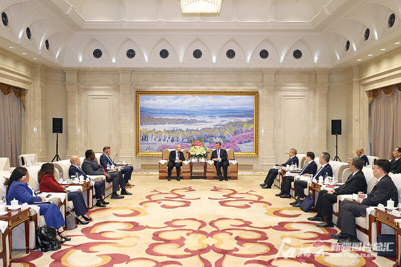 自治區(qū)黨委書記馬興瑞、自治區(qū)主席艾爾肯·吐尼亞孜9月9日下午在烏魯木齊會見了來新疆參訪的約旦、波黑、馬里、老撾、馬爾代夫、所羅門群島駐華使節(jié)代表團一行。