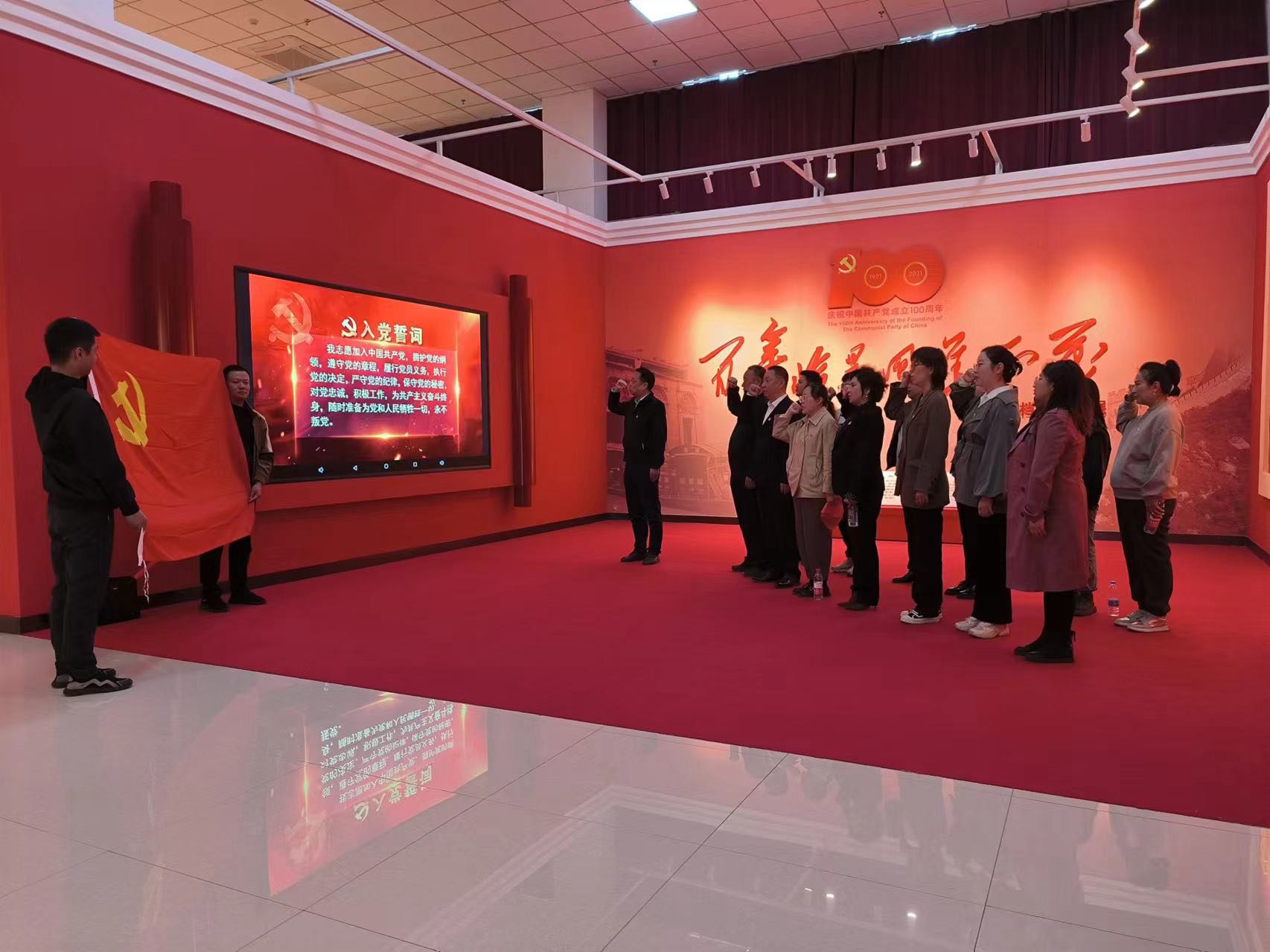 9月23日上午,參加主題黨日活動的4個黨支部全體黨員面對黨旗,重溫入黨誓詞,時刻警醒自己牢記黨員身份,銘記歷史,不忘初心。