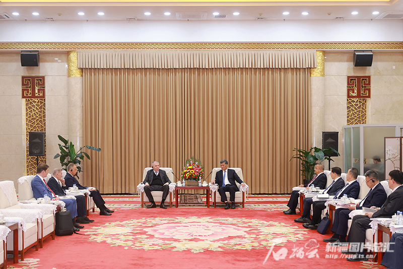 10月14日,自治區黨委書記馬興瑞、自治區主席艾爾肯·吐尼亞孜在烏魯木齊與俄共中央副主席,俄國家杜馬獨聯體事務、歐亞一體化和俄僑聯絡事務委員會主席卡拉什尼科夫所率的工作組一行進行了友好交流。天山網-新疆日報記者 崔志堅攝
