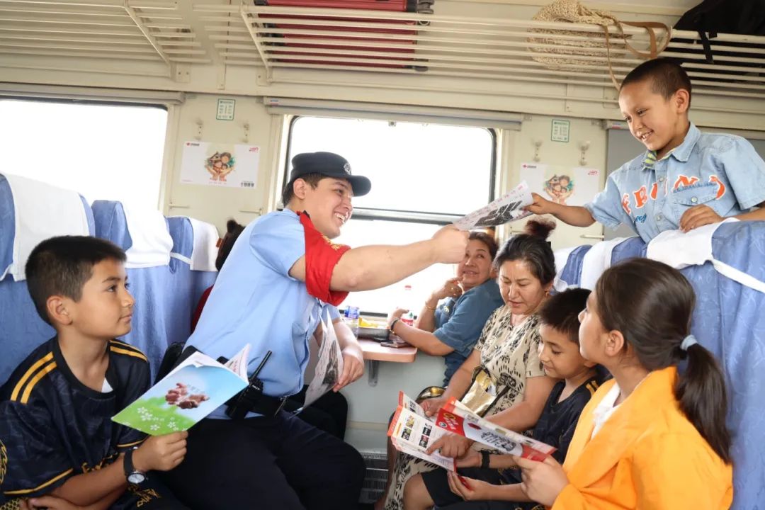 “7558/7557次列車是新疆唯一一對有流動巴扎的‘公益小慢車’,我們在確保列車治安秩序良好的同時,還能促進沿線地區的經濟發展,幫助農戶增加家庭收入。”庫爾勒公安處乘警支隊乘務一大隊隊長任龍介紹說。