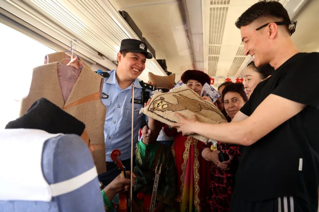 為了幫助沿線居民增收致富,自2020年起,7558次列車會根據農時、客流等情況,定期組織“流動巴扎(集市)”,沿線群眾會在車上售賣自家產的農副產品和制作的手工藝品。