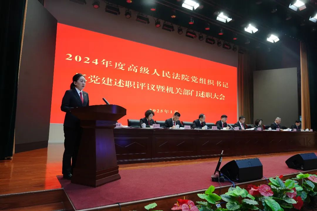 1月7日,自治區高級人民法院召開2024年度黨組織書記抓黨建述職評議會議,黨組書記都紅巖作點評講話,院長、黨組副書記迪里夏提·沙依木主持會議。