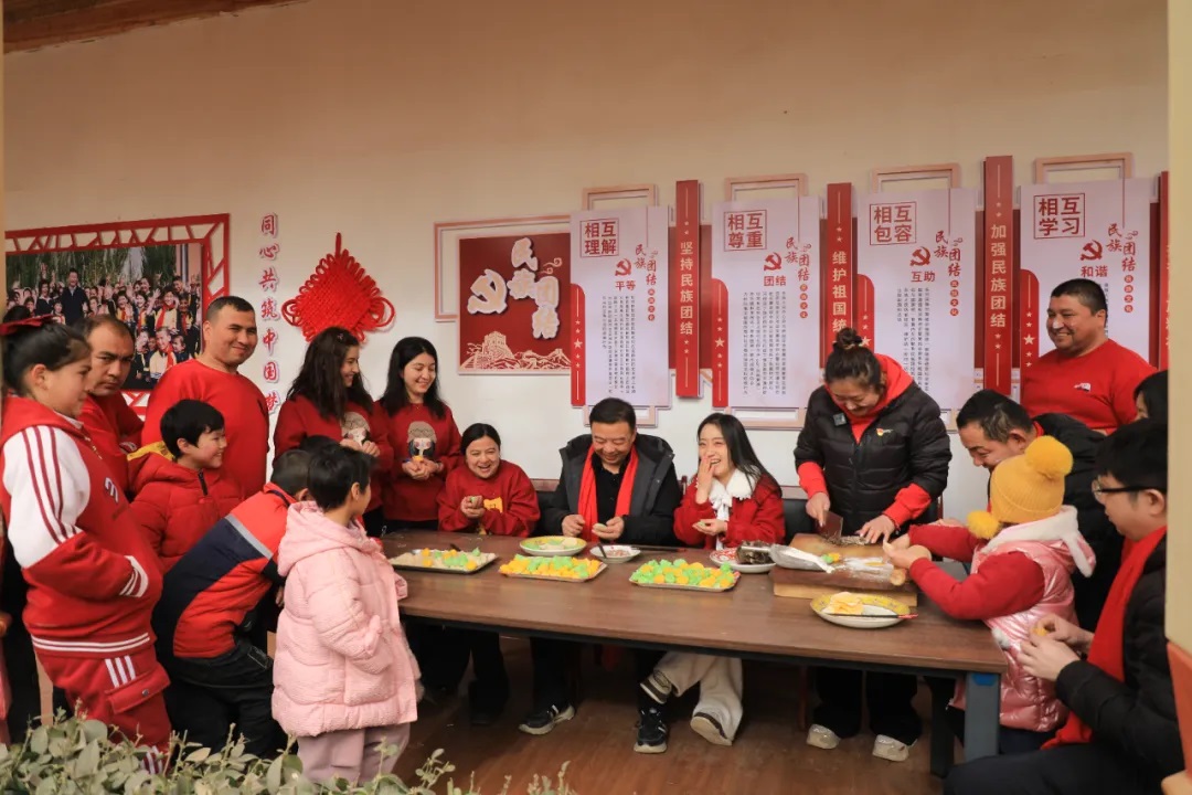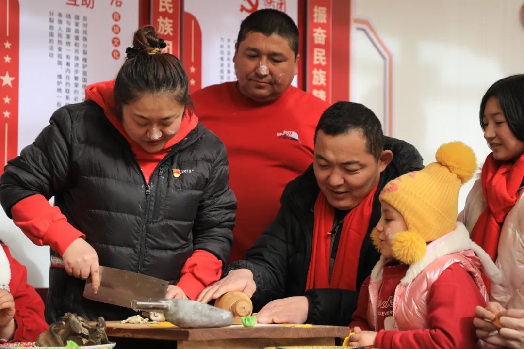 另一邊,在村民阿依姆妮薩古麗·奧布力喀斯木家中,她們一家人正和自治區(qū)黨委政法委駐村工作隊(duì)隊(duì)員、村“兩委”干部圍坐在一起,一同制作傳統(tǒng)美食——餃子。大家一起揉面、搟皮、和餡,手上不停;孩子們也不閑著,在一旁幫忙遞調(diào)料,小手忙得不亦樂乎。屋子里彌漫著美食的香氣,歡聲笑語不斷。