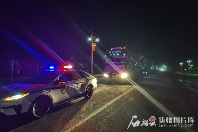 巴音郭楞蒙古自治州塔里木公安局交警支隊制定夜間運輸方案,為轄區企業的不可解體大件設備提供運輸保障。4月30日、5月1日夜間,該支隊組織沿途警力提前排查消除道路安全隱患,開啟護送模式。運輸大件車輛車體長、貨物高,每進入交叉路口、轉彎和重點路段前,沿途警力實施臨時交通管制,指揮疏導交通,確保過往車輛和群眾安全通行。
