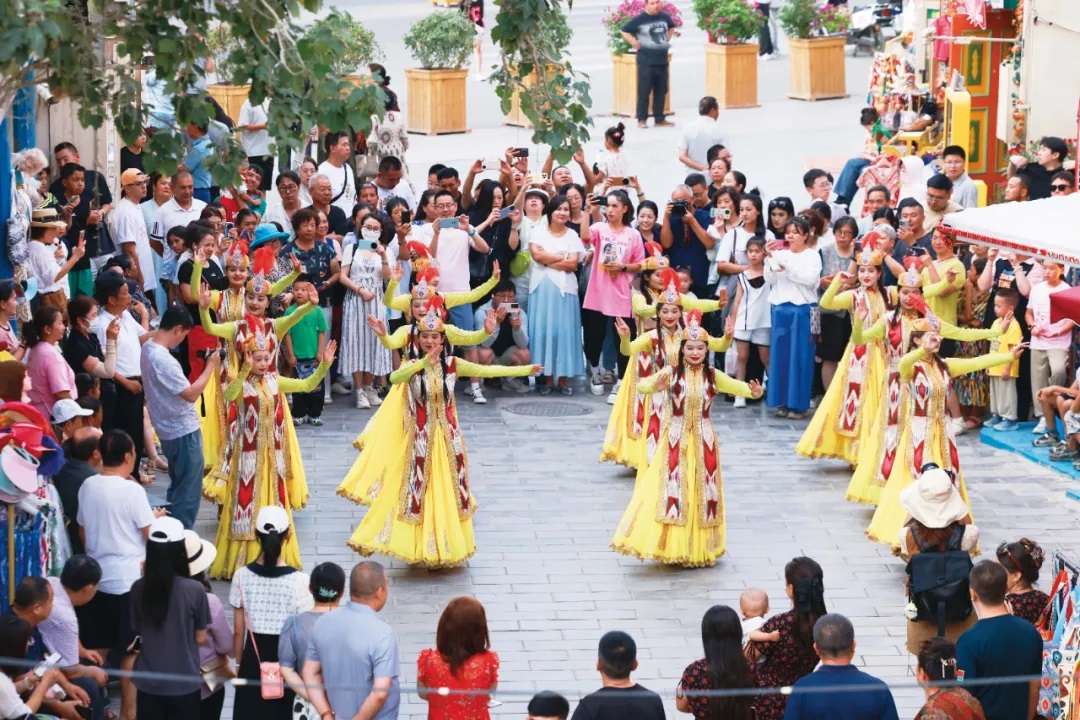 游客在新疆庫(kù)車市龜茲小巷欣賞樂(lè)舞表演?新華社記者孟濤/攝